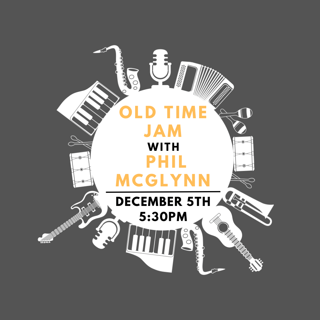Bring your instrument and join us for an Old-time Jam with Phil McGlynn! Begins at 5:30