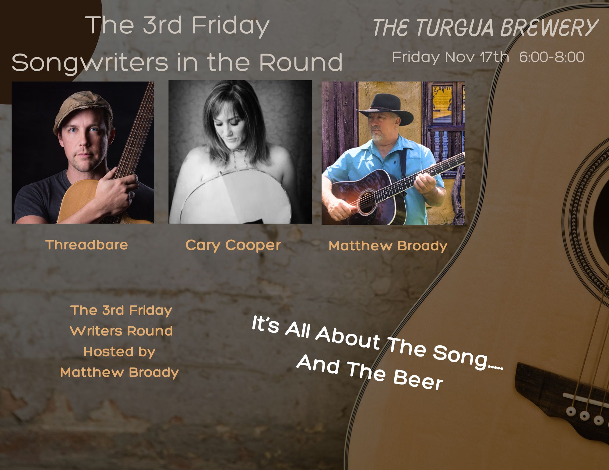 Join us for Songwriters in the Round with Matthew Broady, Cary Cooper & Threadbare