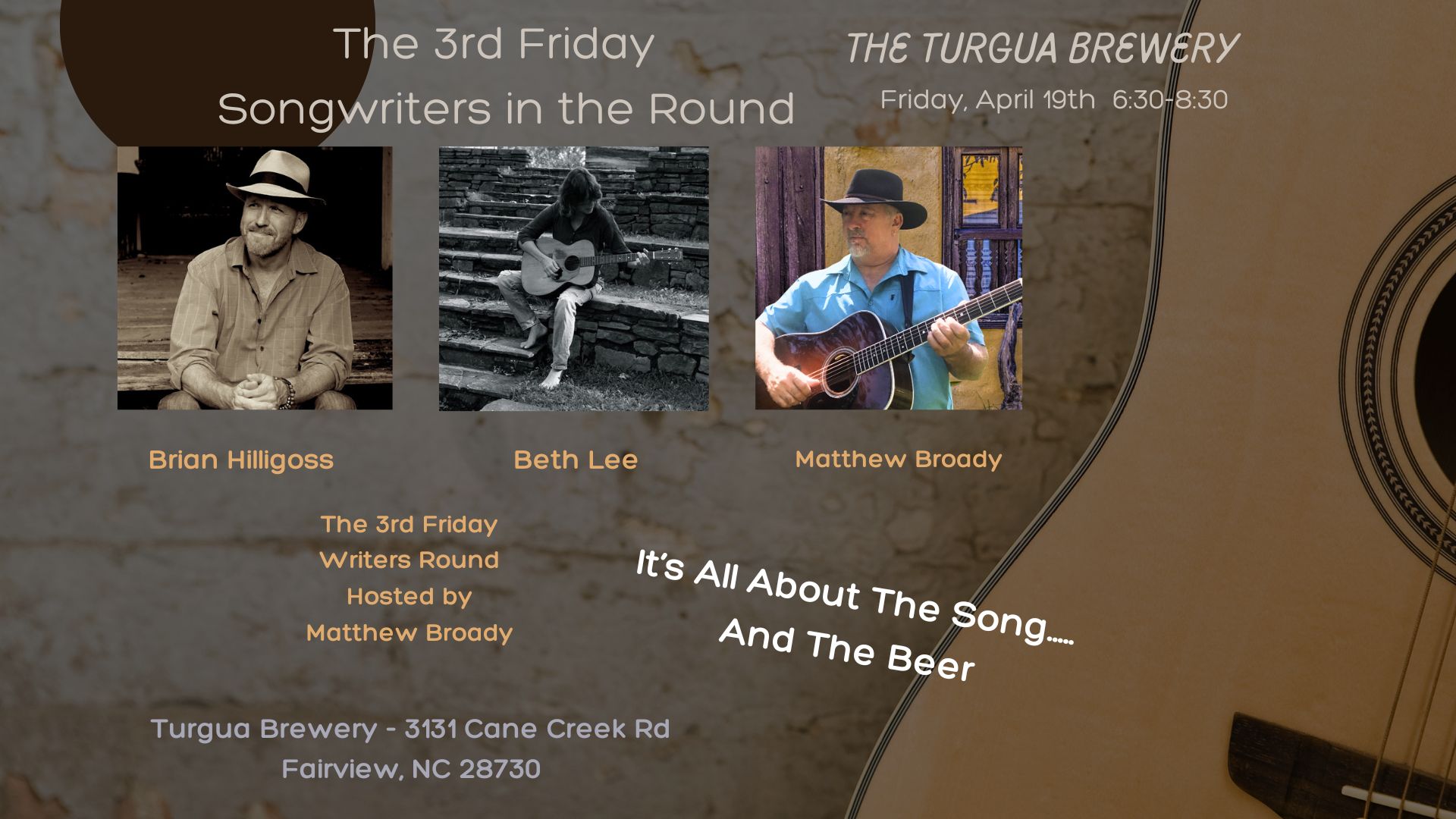 Join us for Songwriters in the Round with Matthew Broady, Brian Hilligoss & Beth Lee