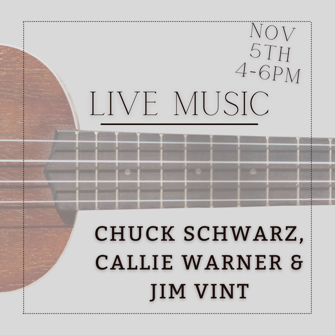 Join us Sunday, November 5th for live music by Chuck Schwarz, Callie Warner & Jim Vint!