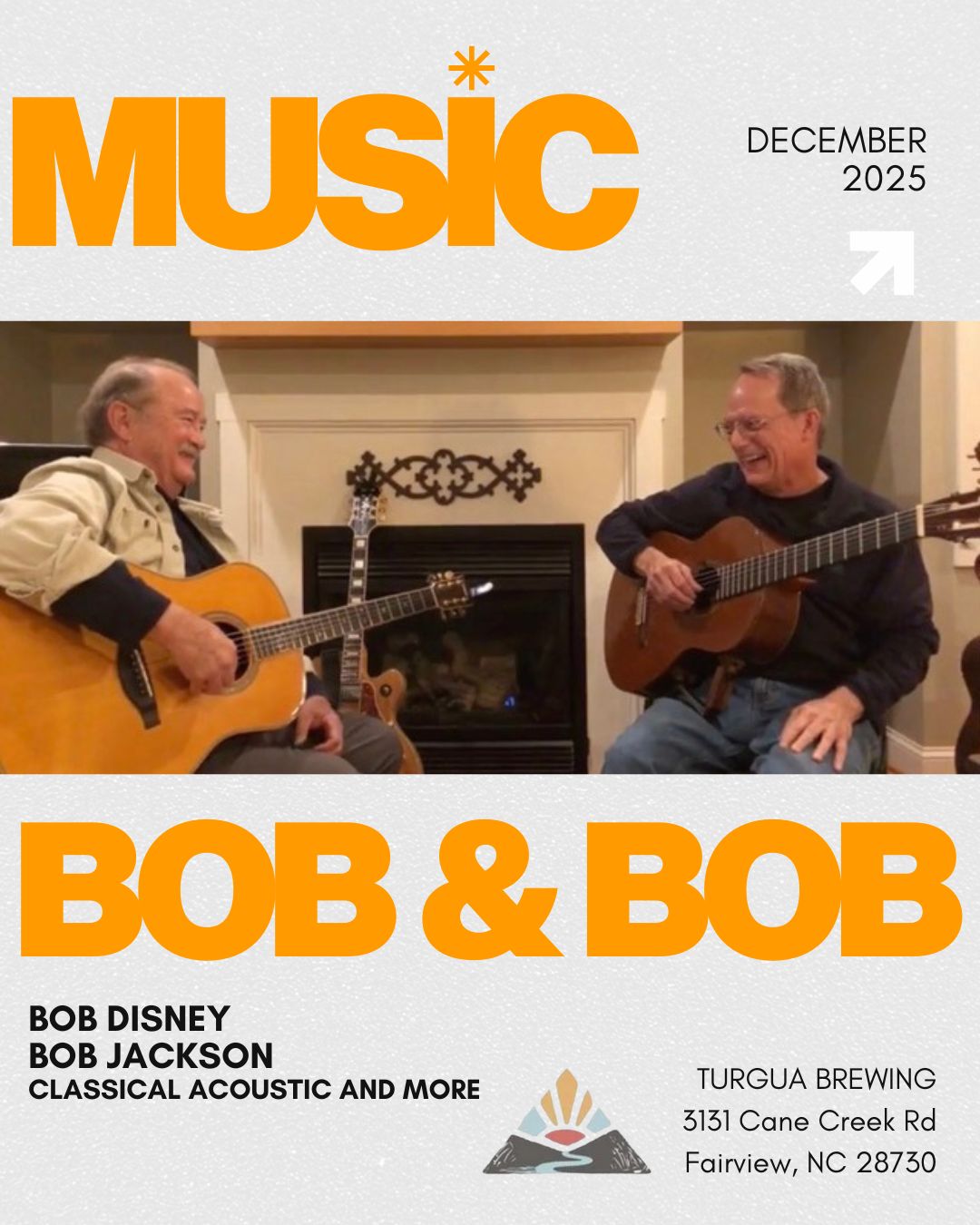 Join us for live music by classical guitar duo: Bob Disney & Bob Jackson