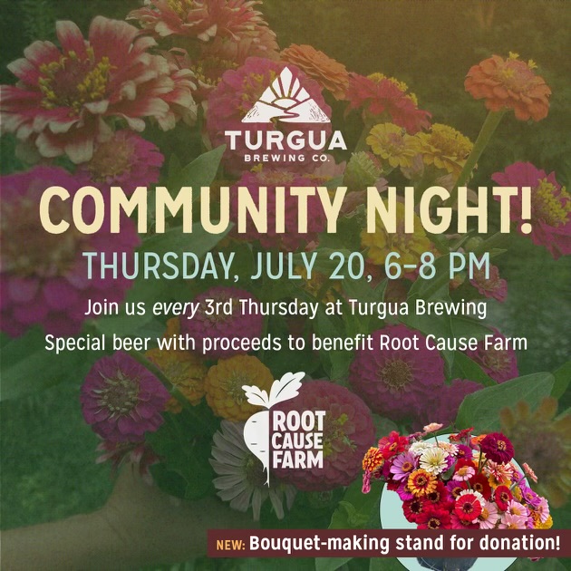 Join us Thursday, July 19th from 6-8pm for Community Night with Root Cause Farm and make your own bouquet! Special beer with proceeds to benefit Root Cause Farm