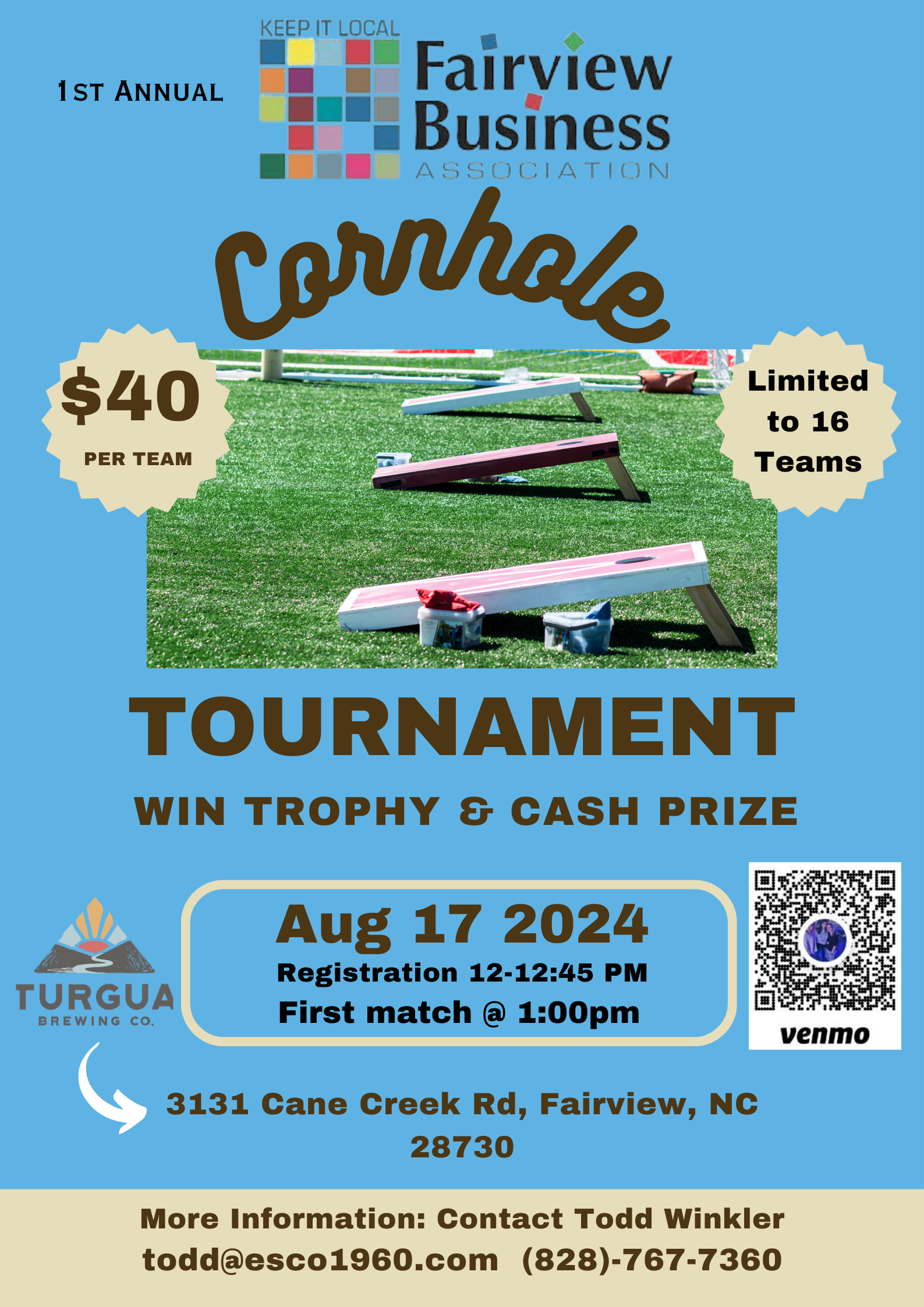 Join us for the 1st annual Cornhole Tournament hosted by the Fairview Business Association