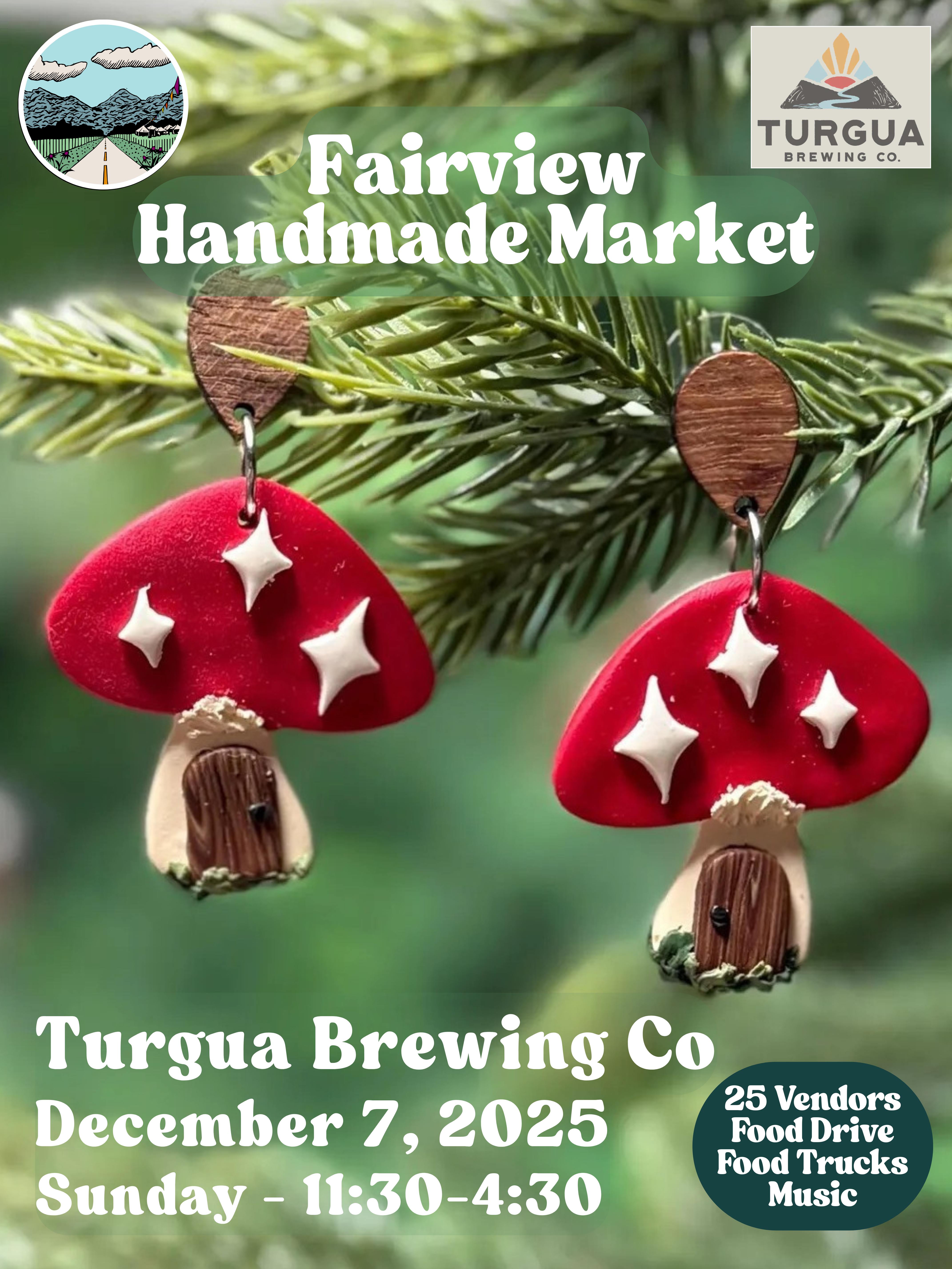 Fairview Handmade Market will be at Turgua Brewing Co. on Sunday, December 7th from 11:30am – 4:30pm