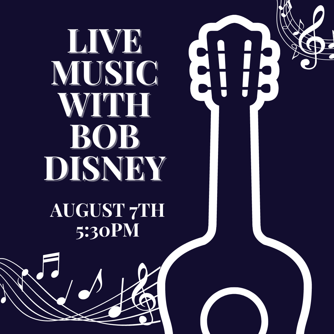 Join us Monday, August 7th at 5:30 for live music by Bob Disney