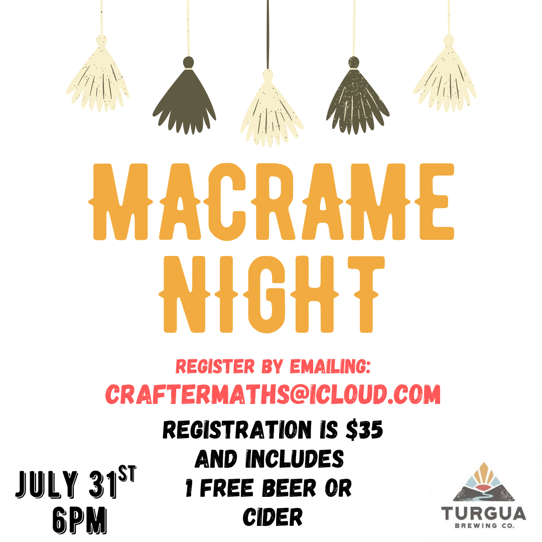 Join @craftermaths at Turgua on Thursday, July 31st and make a macrame plant hanger with us!