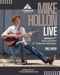 Join us March 7th | 6-8pm at Turgua Brewing for an evening of soulful, groove-forward tunes with Mike Hollon 🍻
