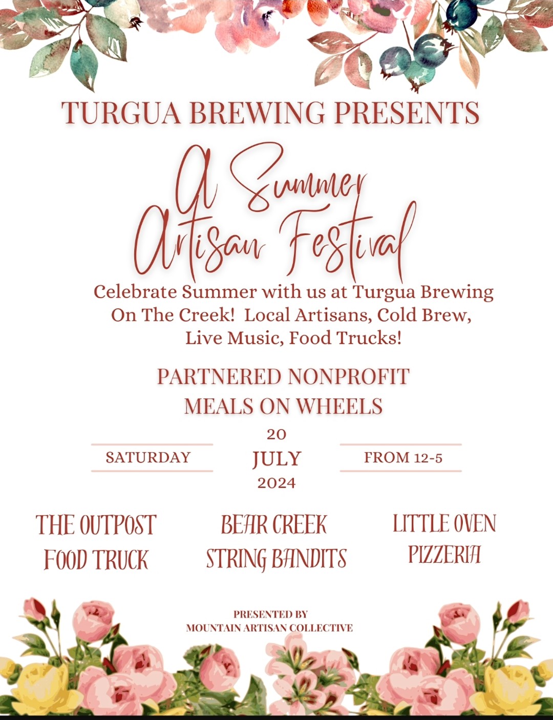 Join us Saturday, July 20th 12-5pm as we host @mountainartisancollective Summer Artisan Festival at Turgua Brewing!
