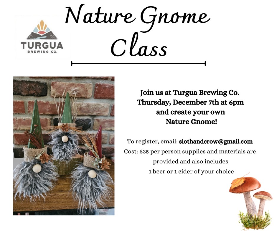 Join us Thursday, December 7th at 6pm and create your own Nature Gnome!