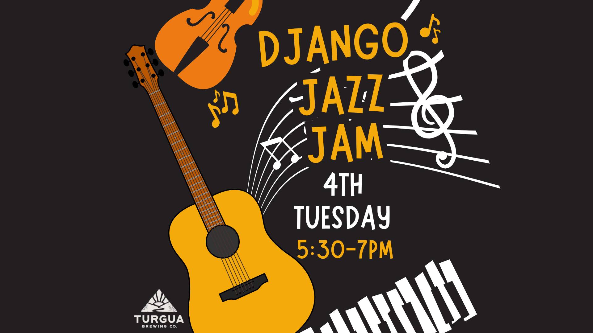 Join us on the 4th Tuesday of each month for a Django Jazz Jam with Fatty 5:30-7pm