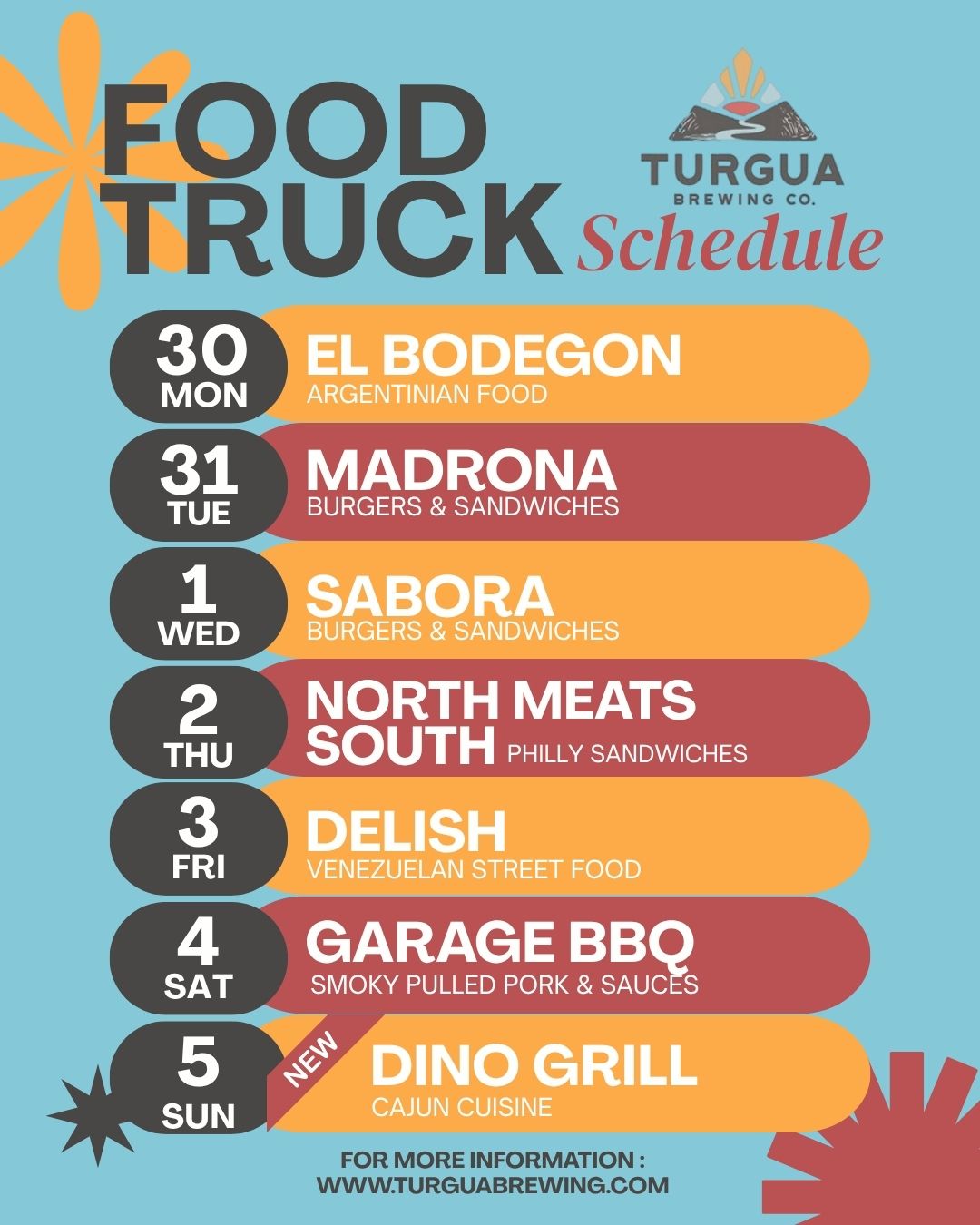 TURGUA FOOD TRUCK SCHEDULE MAR 30 – APR 5, 2026
