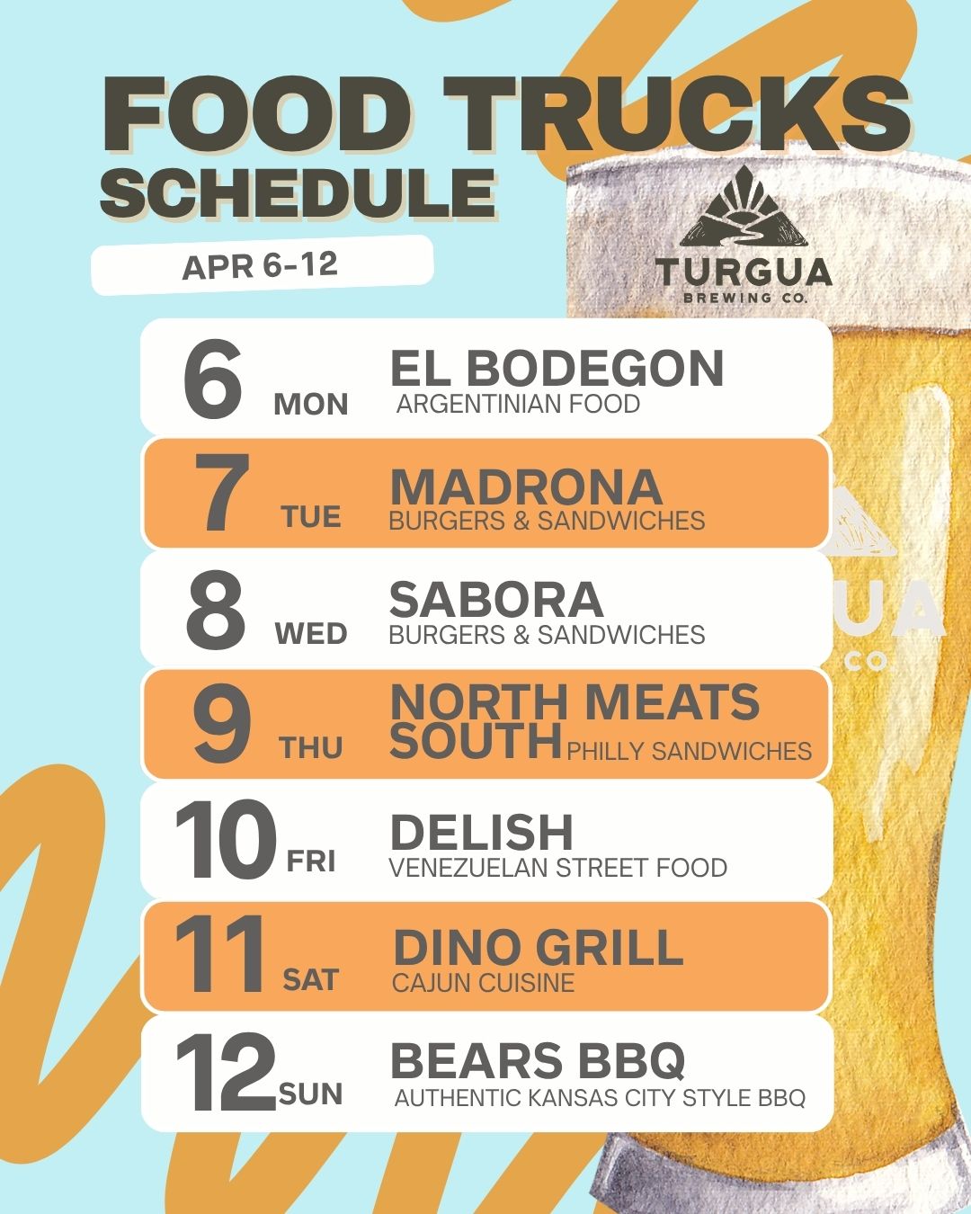 TURGUA FOOD TRUCK SCHEDULE MAR 30 – APR 5, 2026